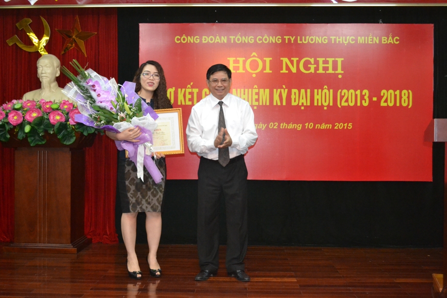 Ngày 02/10/2015 tại Hà Nội, Công đoàn Tổng công ty Lương thực Miền Bắc đã tổ chức Hội nghị sơ kết giữa nhiệm kỳ thực hiện Nghị quyết Đại hội Công đoàn Tổng công ty, nhiệm kỳ 2013-2018. Đến dự và chỉ đạo hội nghị có đồng chí Vũ Xuân Thủy, Ủy viên Ban Cán sự Đảng Bộ Nông nghiệp và PTNT, Ủy viên Đoàn Chủ tịch Tổng Liên đoàn Lao động Việt Nam, Chủ tịch Công đoàn Ngành; đồng chí Bùi Thị Thanh Tâm, Ủy viên BCH Đảng bộ Khối Doanh nghiệp Trung ương, Bí thư Đảng ủy, Tổng giám đốc Tổng công ty; đồng chí Phan Xuân Quế , Phó Bí Thư Đảng ủy, Chủ tịch HĐTV Tổng công ty; các đồng chí lãnh đạo trong Ban Thường vụ Đảng ủy, Hội đồng thành viên, Ban Tổng giám đốc, Kiểm soát viên và các Trưởng ban chuyên môn Tổng công ty Lương thực Miền Bắc. Tham dự hội nghị có các đồng chí Ủy viên BCH Công đoàn Tổng công ty, Chủ tịch Công đoàn cơ sở trực thuộc.