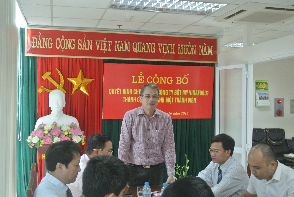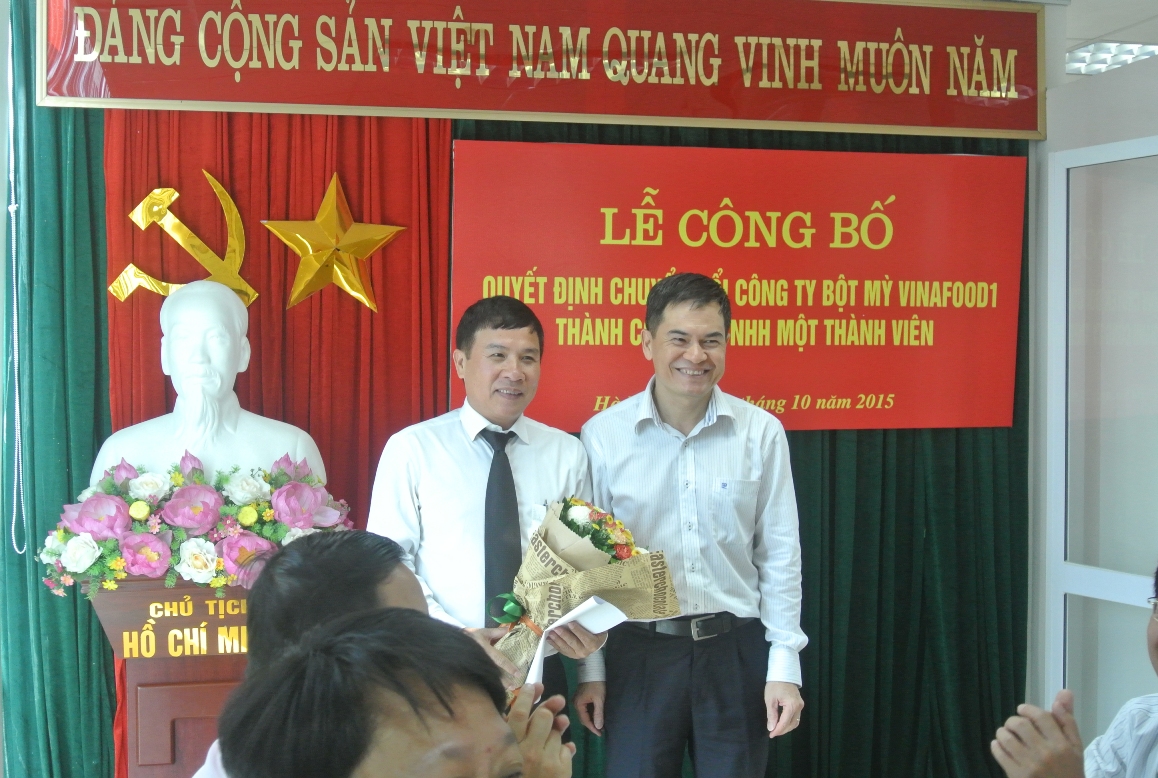 Ngày 29 tháng 10 năm 2015, tại trụ sở Công ty Bột mỳ VINAFOOD1 1, Tổng công ty Lương thực Miền Bắc đã tổ chức Lễ công bố quyết định chuyển đổi Công ty Bột mỳ VINAFOOD1 – Chi nhánh của Tổng công ty Lương thực miền Bắc thành Công ty TNHH Một thành viên theo Quyết định số 4204/QĐ-BNN-QLDN của Bộ Nông nghiệp và Phát triển Nông thôn cùng các quyết định của Tổng công ty bổ nhiệm nhân sự Chủ tịch và các thành viên Hội đồng thành viên Công ty TNHH MTV Bột mỳ VINAFOOD1.