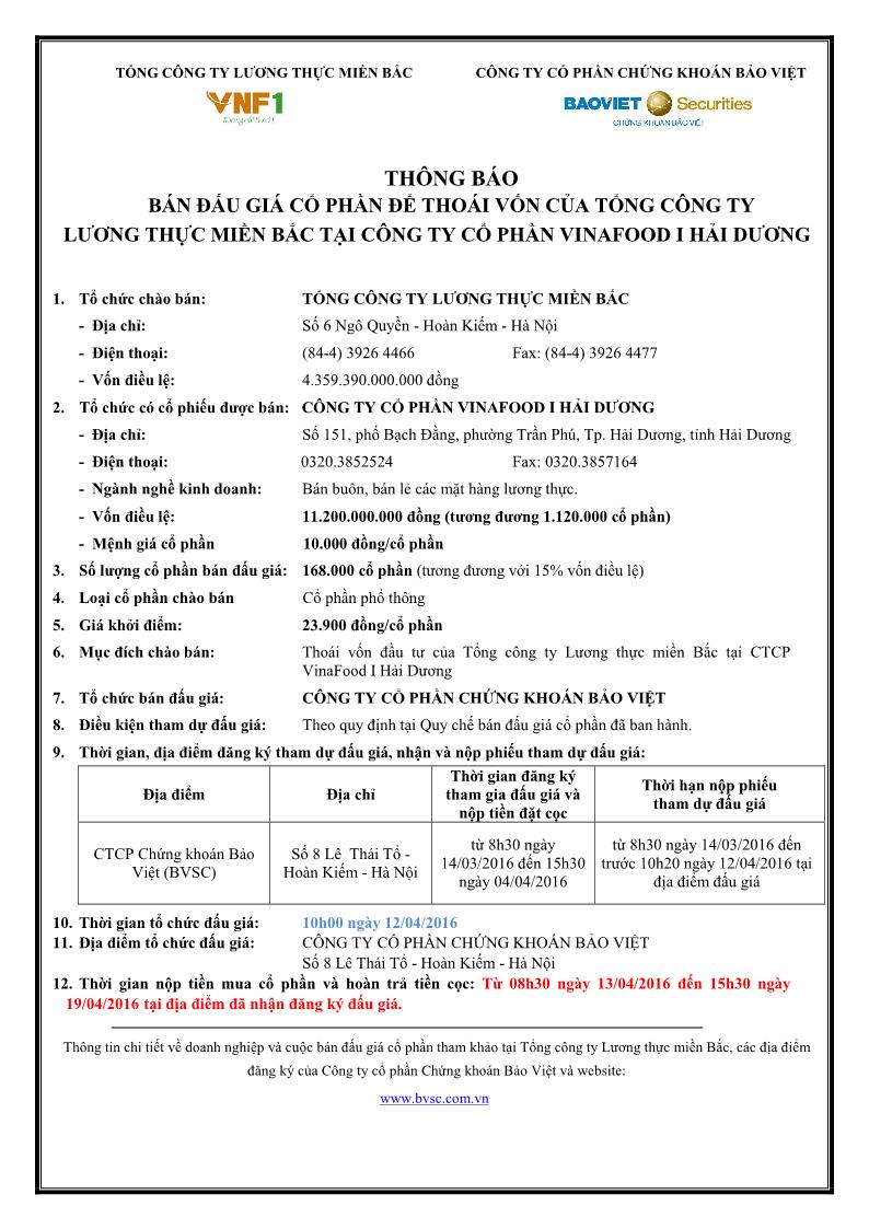 Trụ sở chính: Số 6 Ngô Quyền, Phường Hoàn Kiếm, Thành phố Hà Nội * - Tel:(84) 24 3926 4466 * Fax:(84) 24 3926 4477 * Email:vinafood1@vinafood1.vn