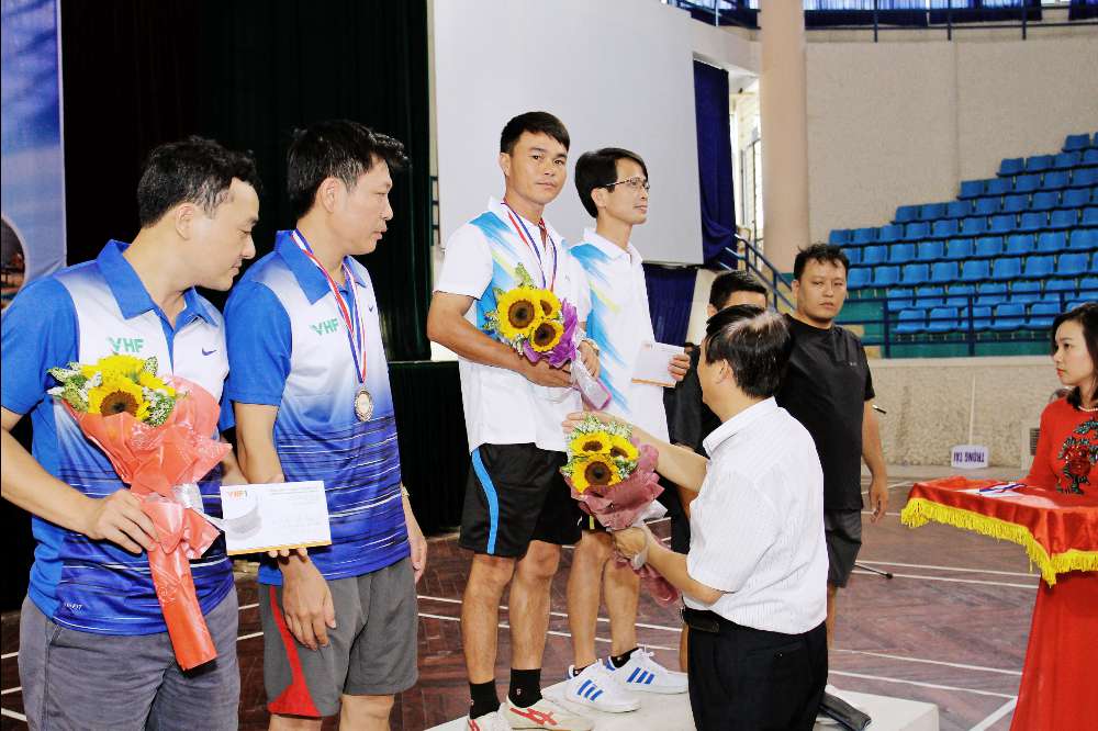 Trao Huy chương cho các vận động viên cầu lông ( đôi nam từ 36-45 tuổi)