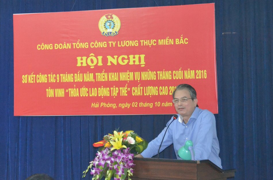 Ngày 02/10/2016 tại thành phố Hải Phòng, Công đoàn Tổng công ty Lương thực miền Bắc đã tổ chức hội nghị sơ kết công tác Công đoàn 9 tháng đầu năm, triển khai nhiệm vụ công tác những tháng cuối năm 2016, tôn vinh "Thỏa ước lao động tập thể chất lượng cao” năm 2016. Tham dự hội nghị có các đồng chí Ủy viên BCH Công đoàn Tổng công ty, Chủ tịch Công đoàn cơ sở trực thuộc. Đến dự và chỉ đạo hội nghị có đồng chí Phan Xuân Quế, Phó Bí thư Đảng ủy, Chủ tịch HĐTV Tổng công ty.