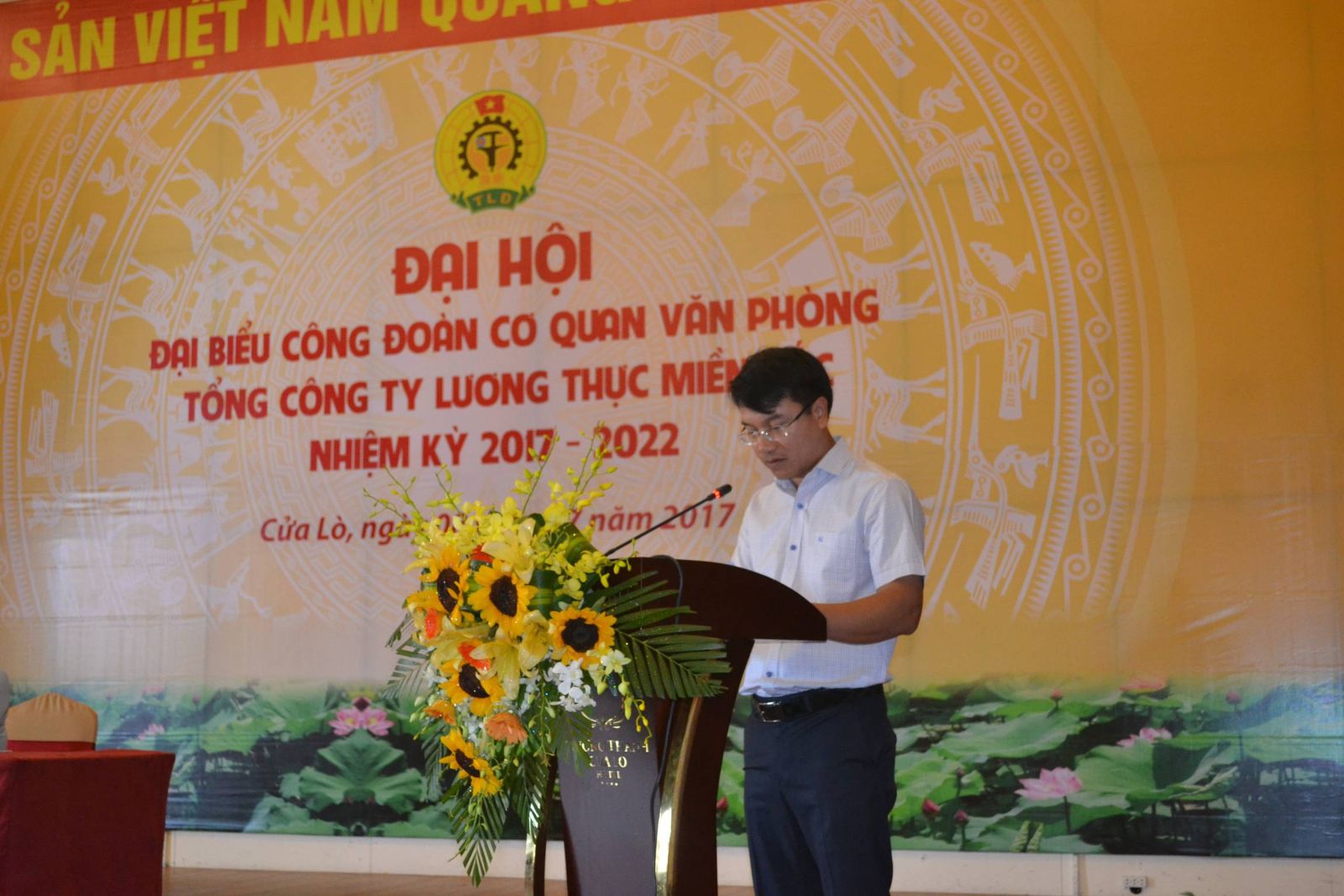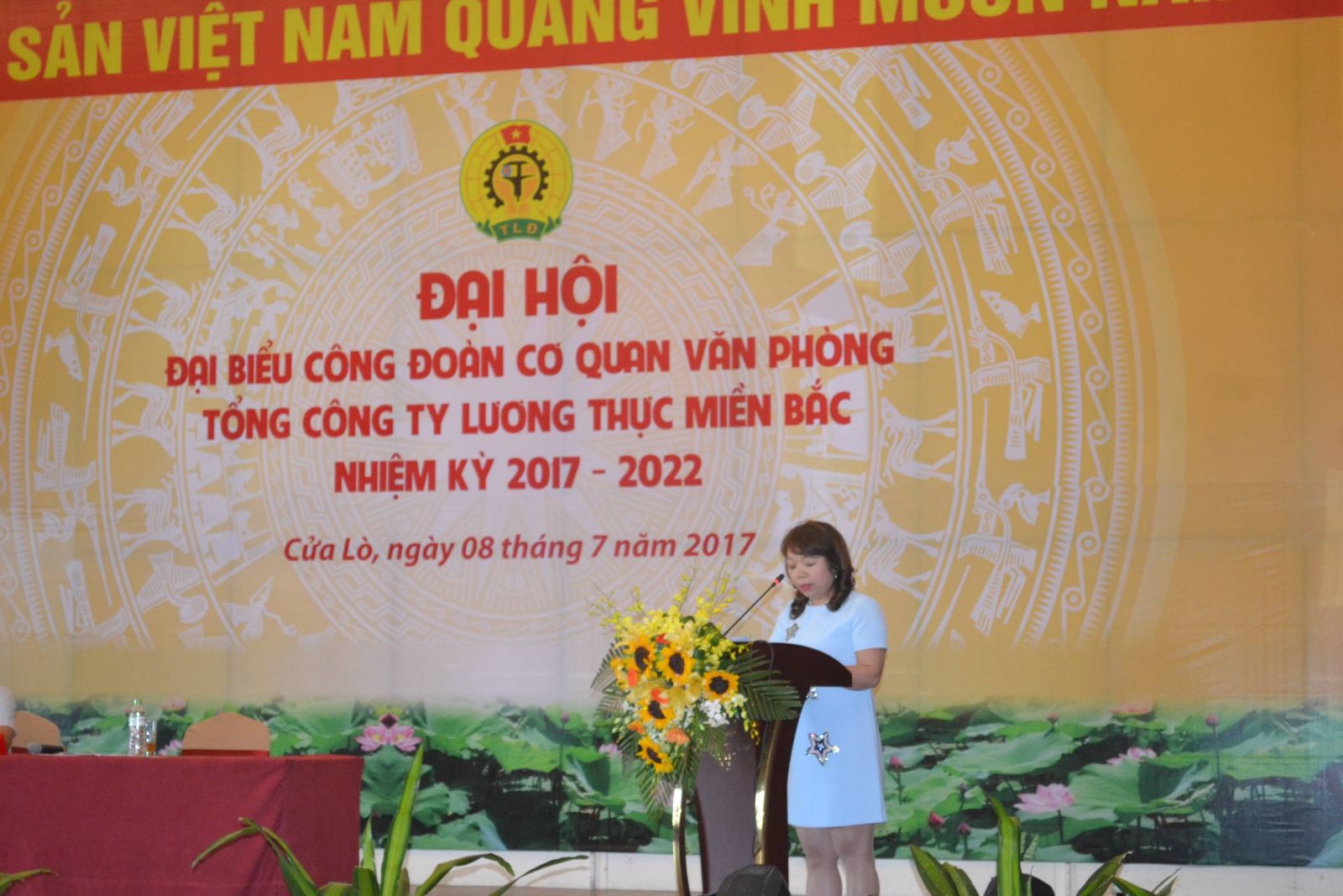 Ngày 08/7/2017, Đại hội đại biểu Công đoàn cơ quan Văn phòng Tổng công ty Lương thực miền Bắc nhiệm kỳ 2017 - 2022 đã diễn ra tại Cửa Lò, Nghệ An. Tham dự Đại hội có: Đồng chí Bùi Thị Thanh Tâm, Bí thư Đảng uỷ, Tổng giám đốc Tổng công ty; Đồng chí Phan Xuân Quế, Phó Bí thư Đảng ủy, Chủ tịch HĐTV Tổng công ty; Dồng chí Đỗ Trần Hoàn, Chủ tịch Công đoàn Tổng công ty cùng các đồng chí trong Ban Thường vụ Đảng ủy, Thành viên HĐTV, Kiểm soát viên và Ban Tổng giám đốc Tổng công ty và gần 100 đại biểu là cán bộ, CNV tham dự Đại hội.